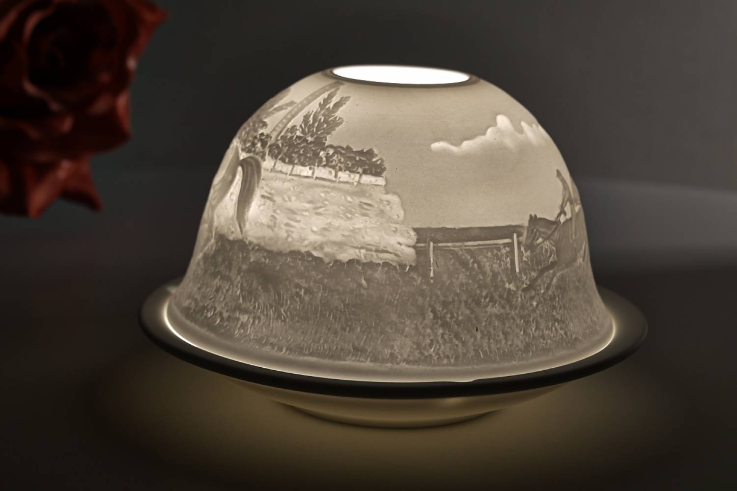 Kerzenfarm Hahn Dome Light, ein edles weißes Porzellanwindlicht.