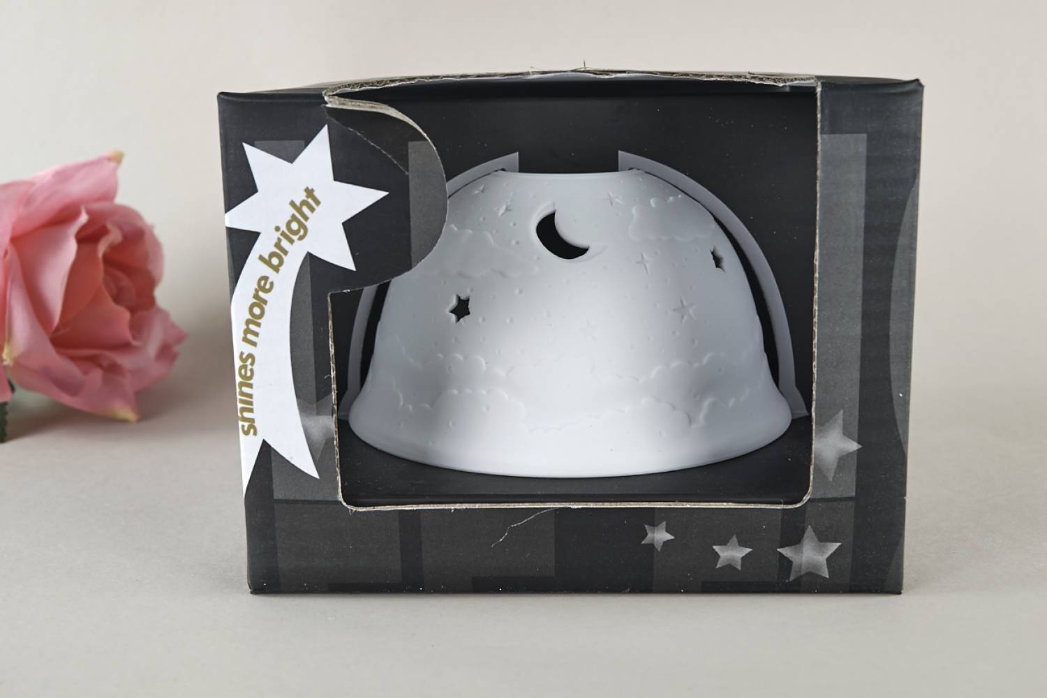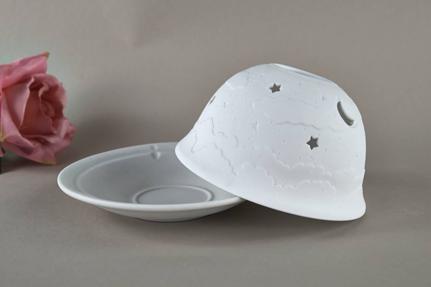 Firmament - Auf diesem Teelichthalter aus Bisquitporzellan sehen Sie ein Stück Kosmos mit Berggipfeln, Mond und Sternen.