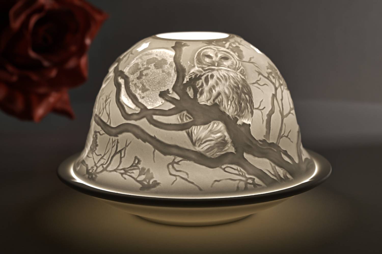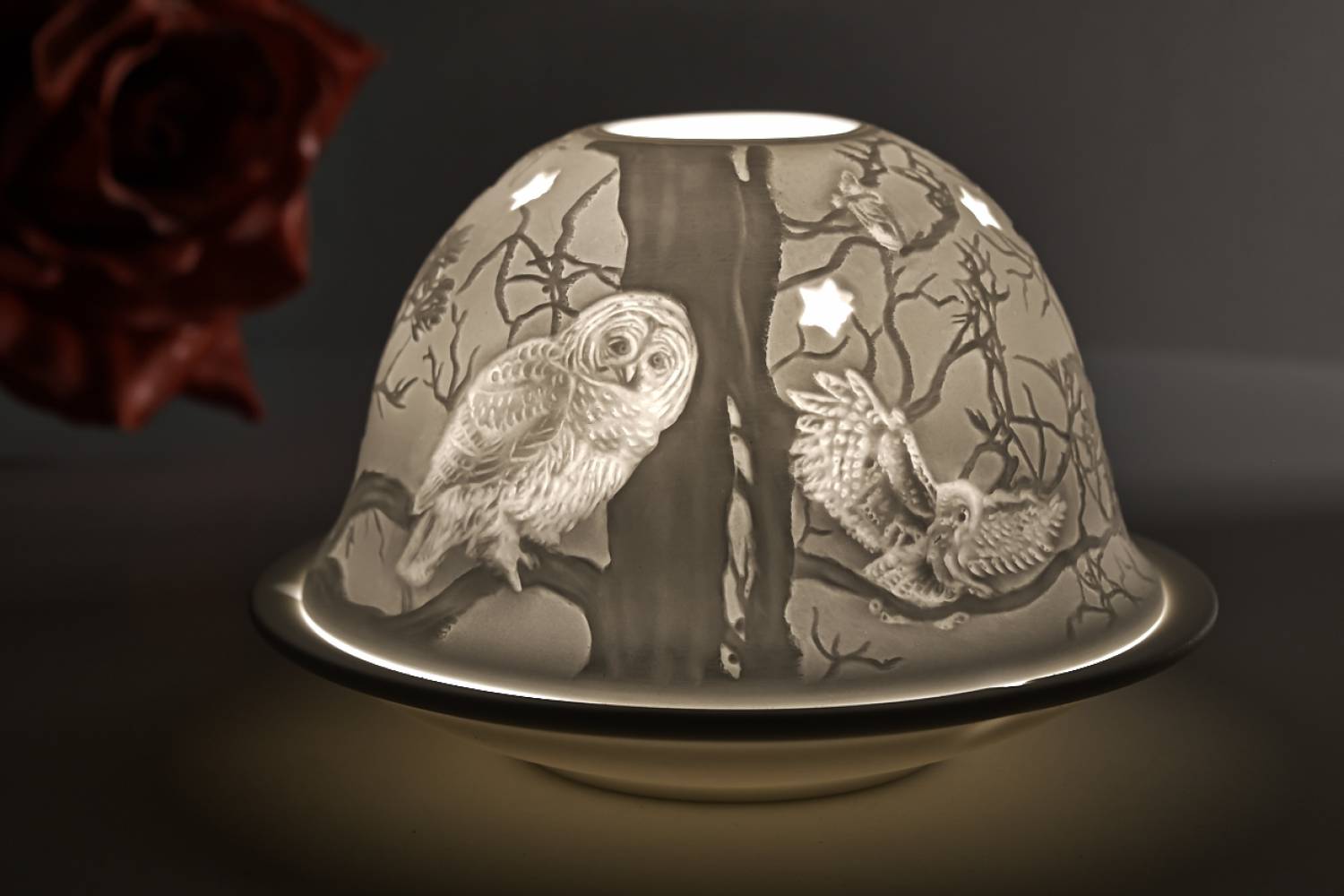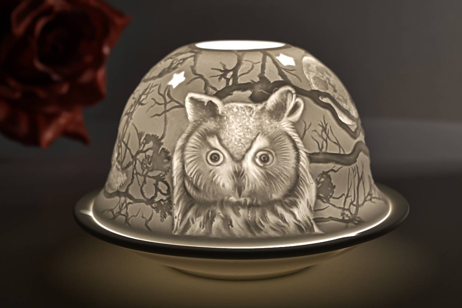 Kerzenfarm Hahn Dome Light Nr. 32046 Eule - Teelicht Windlicht Dekoration Porzellanteelicht