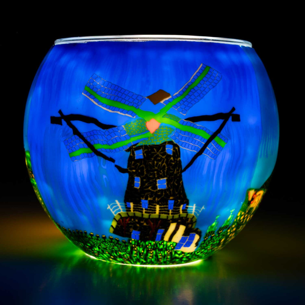 Windmühl - 3 verschiedene Motive auf einem Leuchtglas, von Windmühle bis Leuchtturm, die Gelegenheit für Sie, dem Alltag zu entfliehen und die Gedanken schweifen zu lassen.
