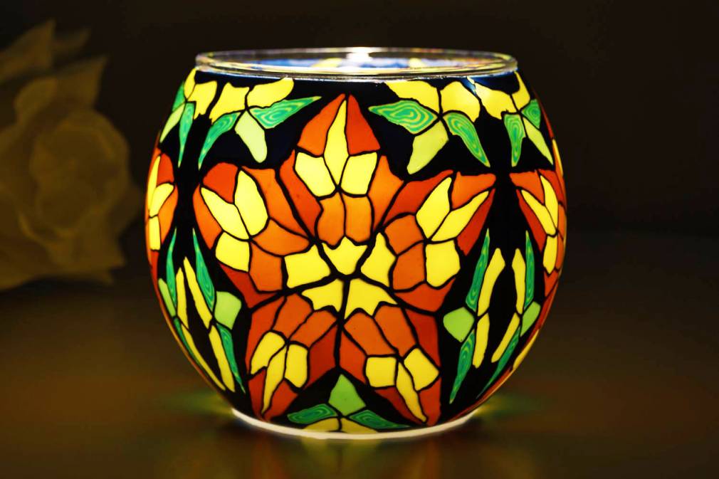 Kerzenfarm Leuchtglas mit einzigartigen, fantasievollen, farbigen Motiven.