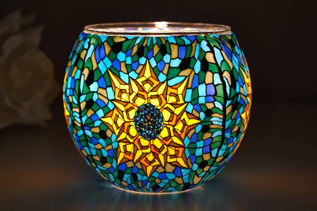 Kerzenfarm Leuchtglas mit einzigartigen, fantasievollen, farbigen Motiven.
