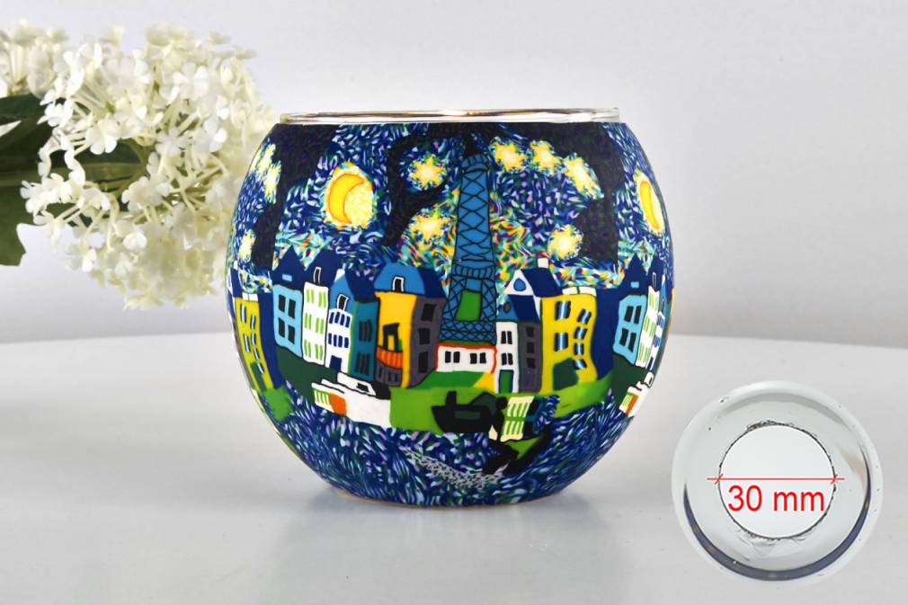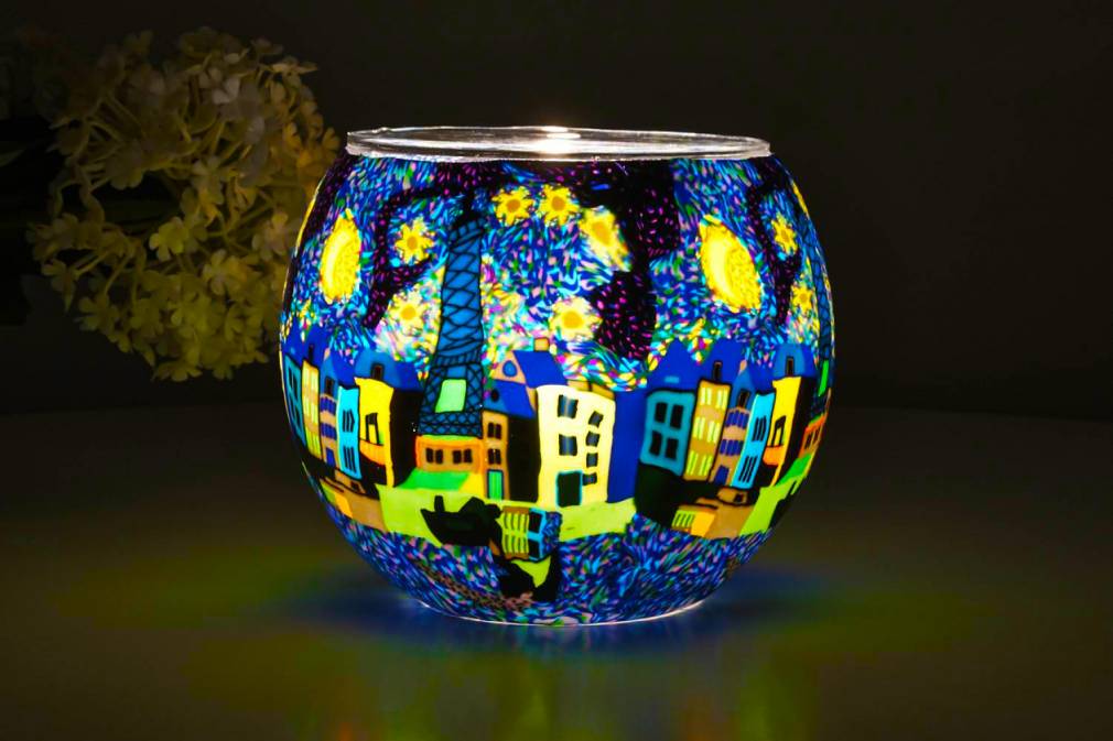 Kerzenfarm Leuchtglas mit einzigartigen, fantasievollen, farbigen Motiven.