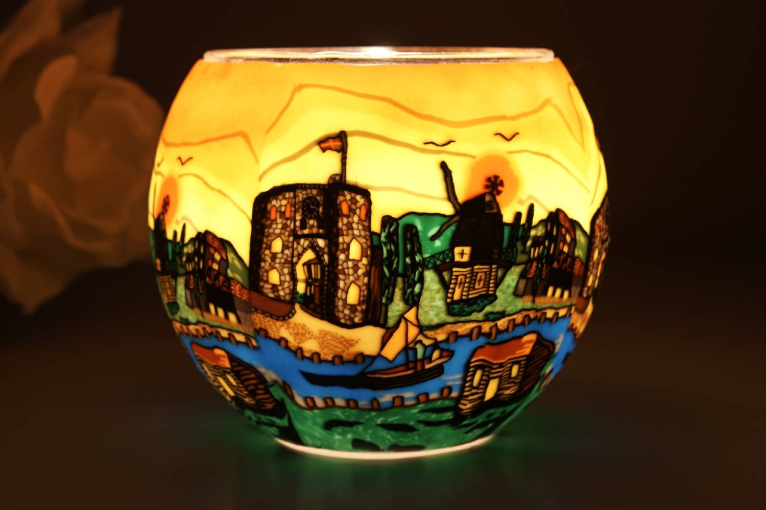 Jedes Leuchtglas ist ein Unikat in Serie, liebevoll von Hand mit Modelliermasse aufmodelliert.