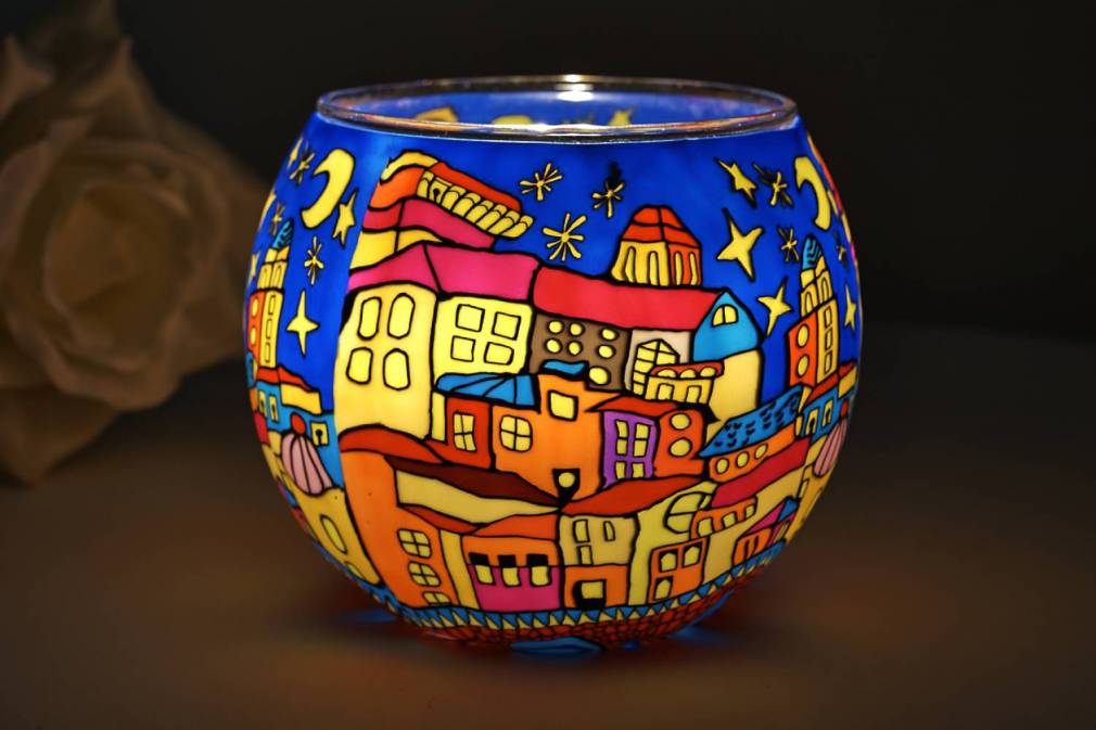 Kerzenfarm Leuchtglas mit einzigartigen, fantasievollen, farbigen Motiven.