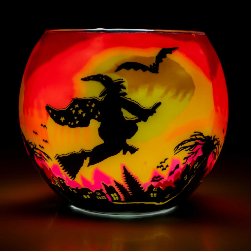 Leuchtglas 21710 Hexe Mystisches Teelicht Hexenflug Handmodelliertes Unikat in Serie