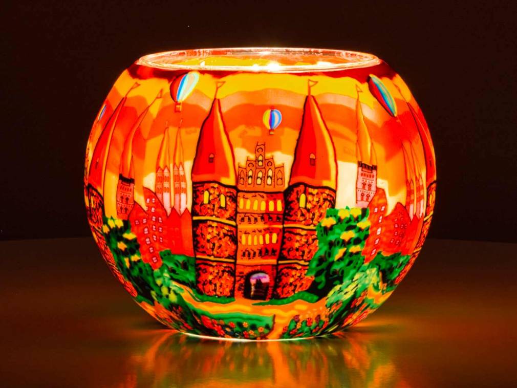 Kerzenfarm Leuchtglas mit einzigartigen, fantasievollen, farbigen Motiven.