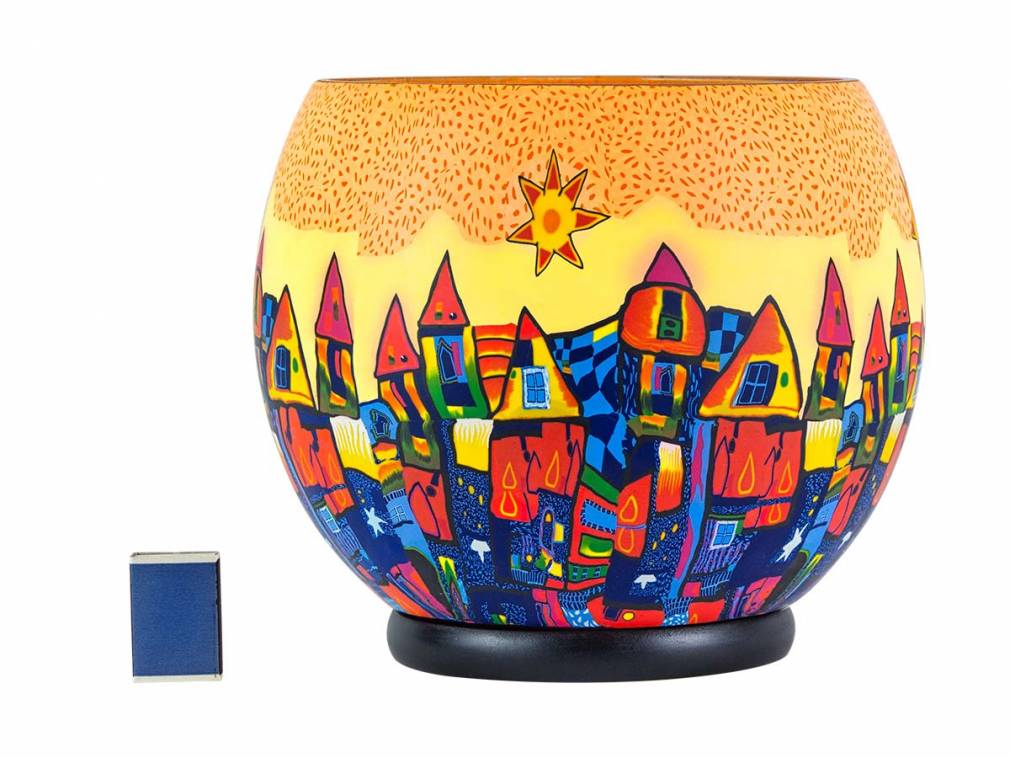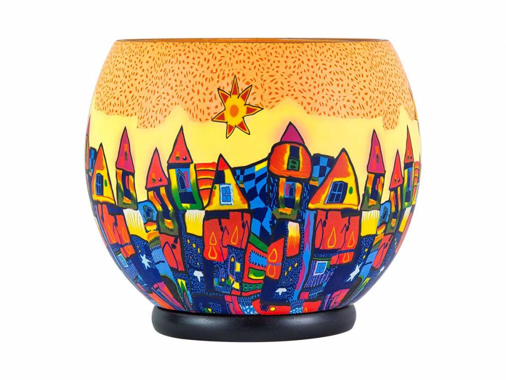 Leuchtgläser mit stimmungsvollen Kunstwerken und fantasievollen, farbigen Designs
