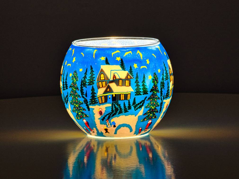 Leuchtglas Nr.386 Idylle und Ruhe im Winter Ø11cm MIT 30mm Bohrung Tauschglas Ersatzglas