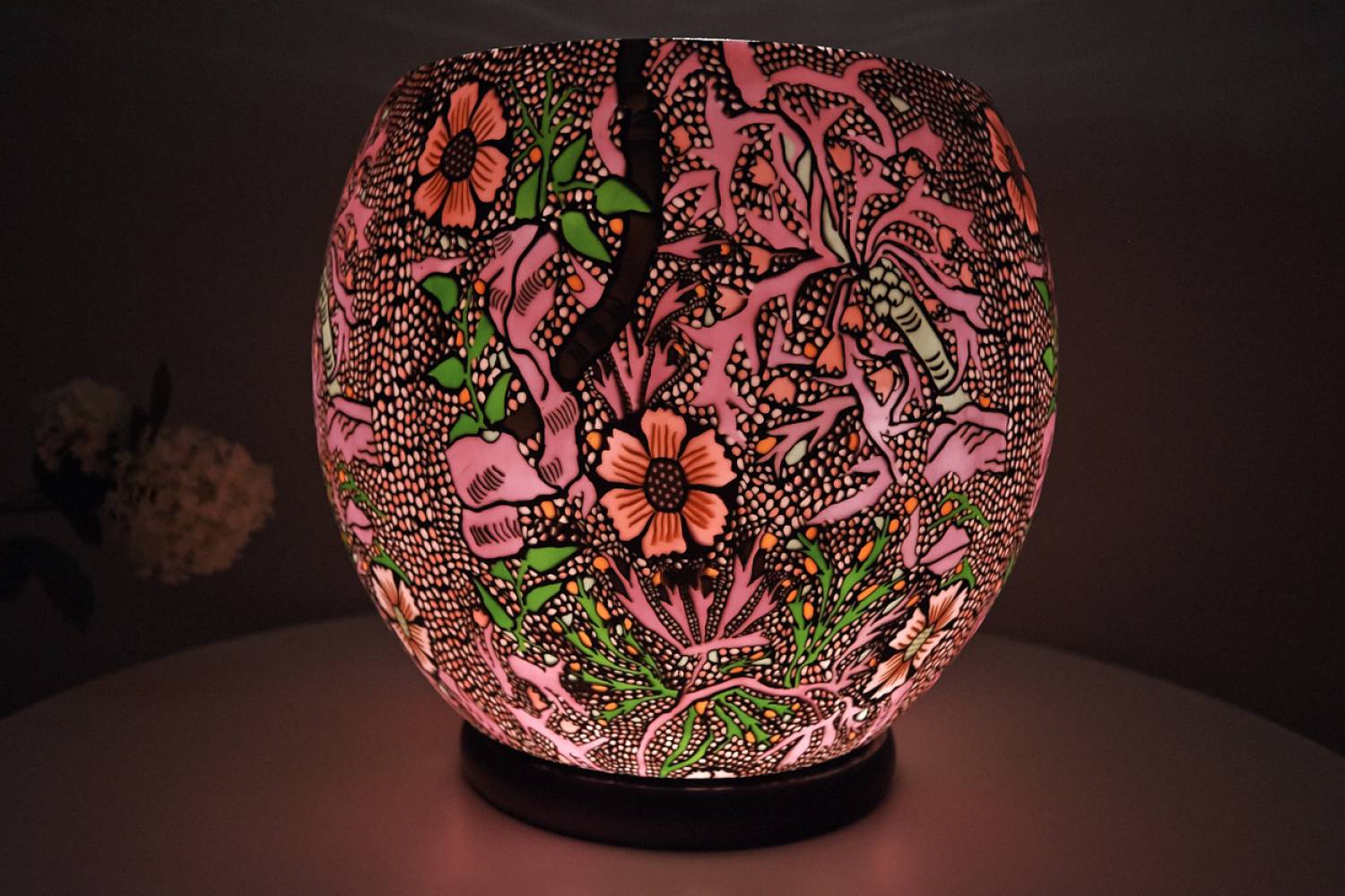 XXL Leuchtgläser mit einem Durchmesser von ca. 30cm. Auch unsere XXL Leuchtglas Lampen verzaubern mit ihren fantasievollen, farbigen Designs Ihr Zuhause.