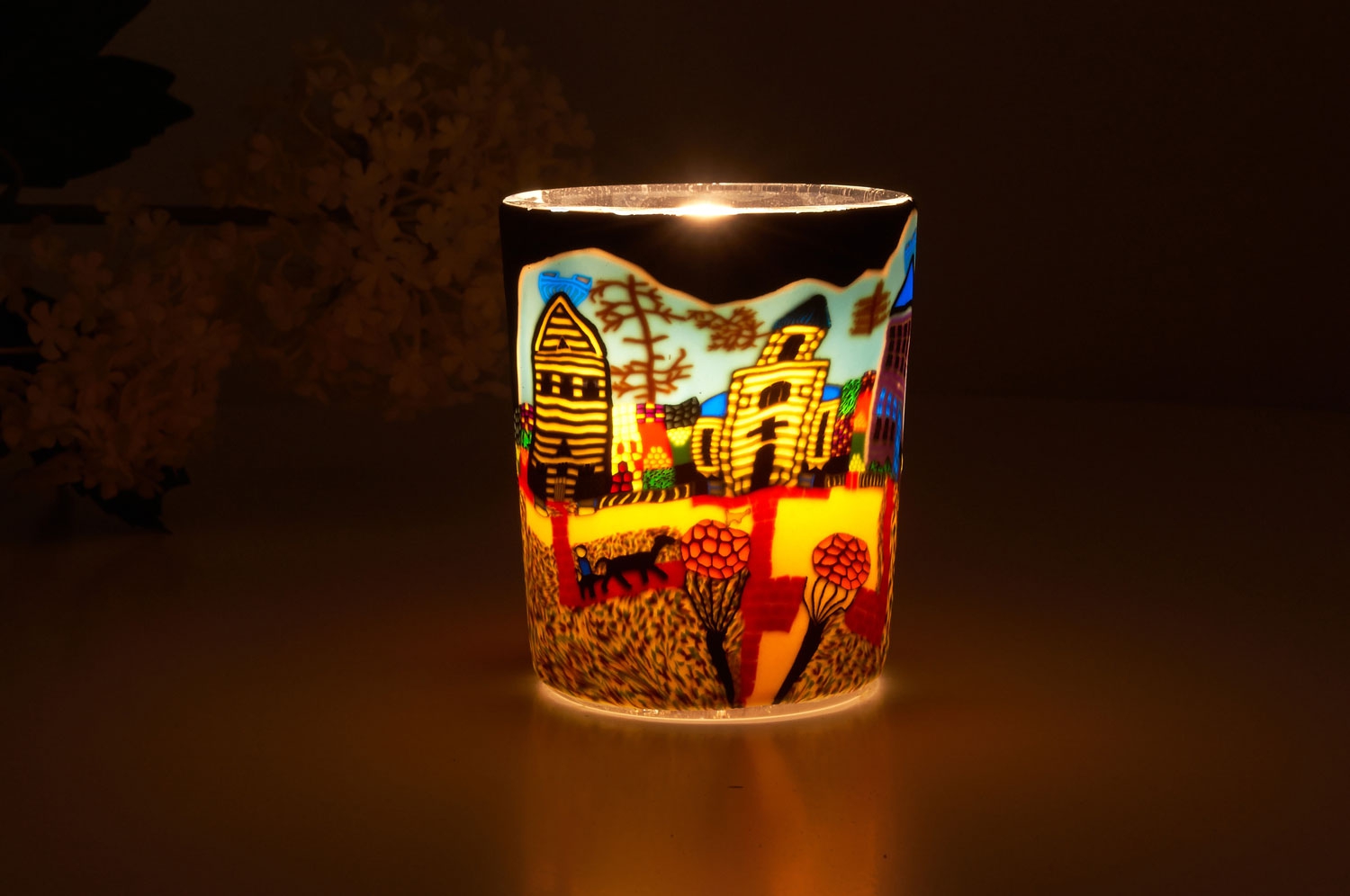Die Leuchtgläser sind für Teelichter geeignet und sobald Sie diese anzünden, setzen die farbigen Motive einen wohltuenden Ruhepunkt in Ihr Zuhause und farbige Akzente in Ihrer Umgebung.