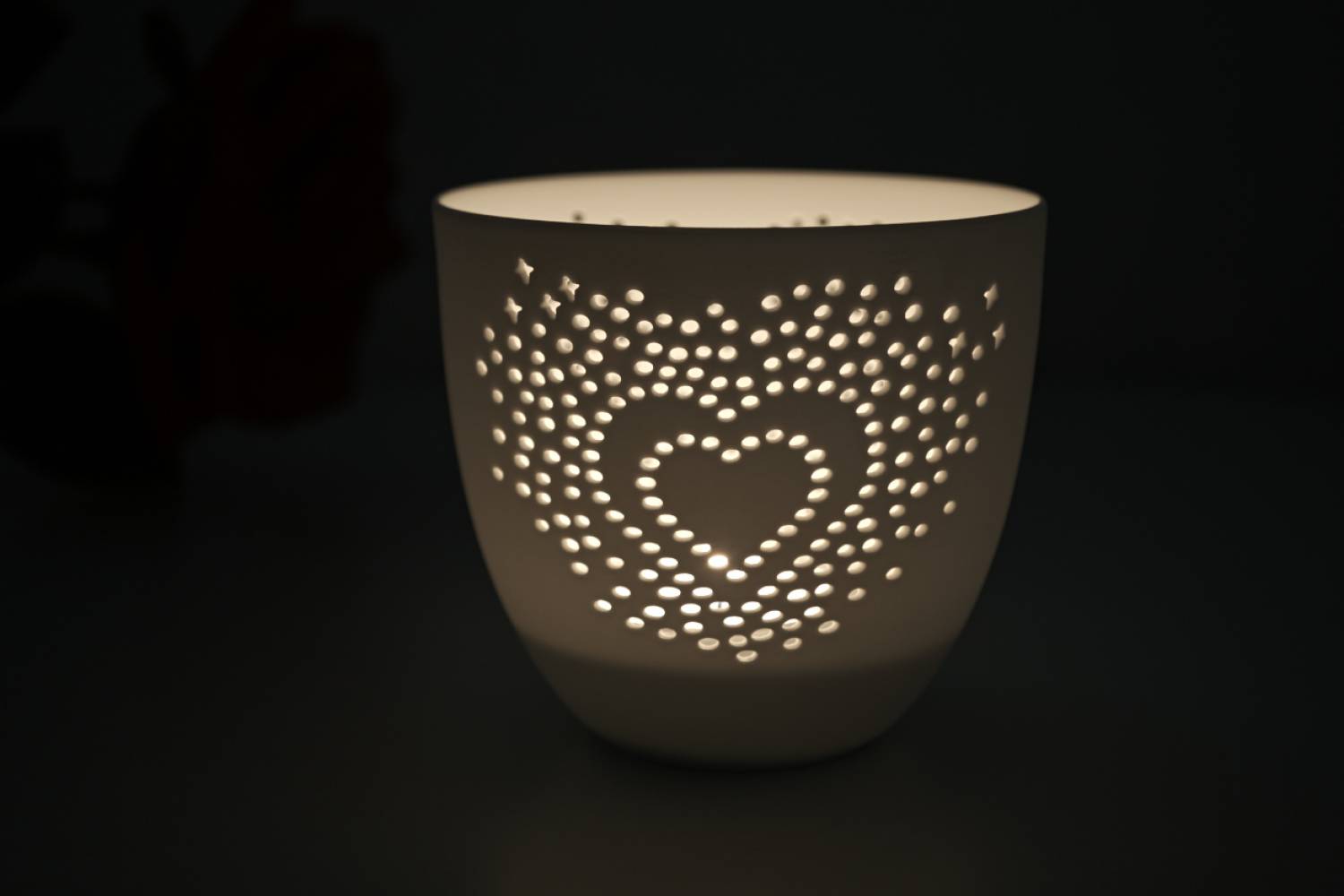 Porzellan-Becher Herz, Teelichthalter Windlicht Lichterzauber Tealight Cups