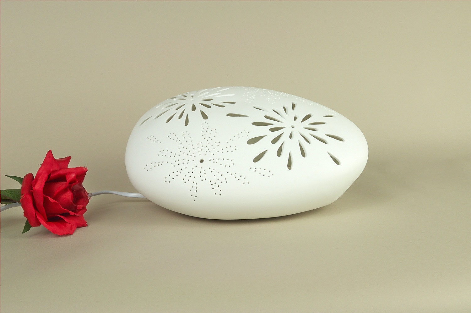 Dekorative Tischleuchten aus zartem Porzellan für ein gemütliches Licht. Die wunderschönen Designs setzen stimmungsvolle Highlights mit den Durchbrüchen in die Umgebung und an jede Wand. Wählen Sie in unserem Shop zwischen den unterschiedlichen Formen und Designs um Ihr Zuhause im wohltuendem, indirekten Licht erstrahlen zu lassen.