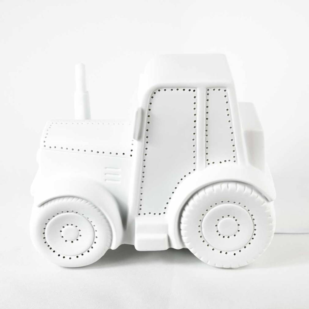 Traktor Tischleuchte weiss Porzellan Deko Tischlampe Kinder Bulldog LED Nachtlicht
