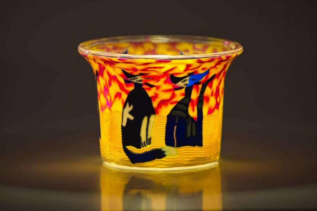 Votiv Glas 110 Katzen gelb/rot dekoratives Windlicht