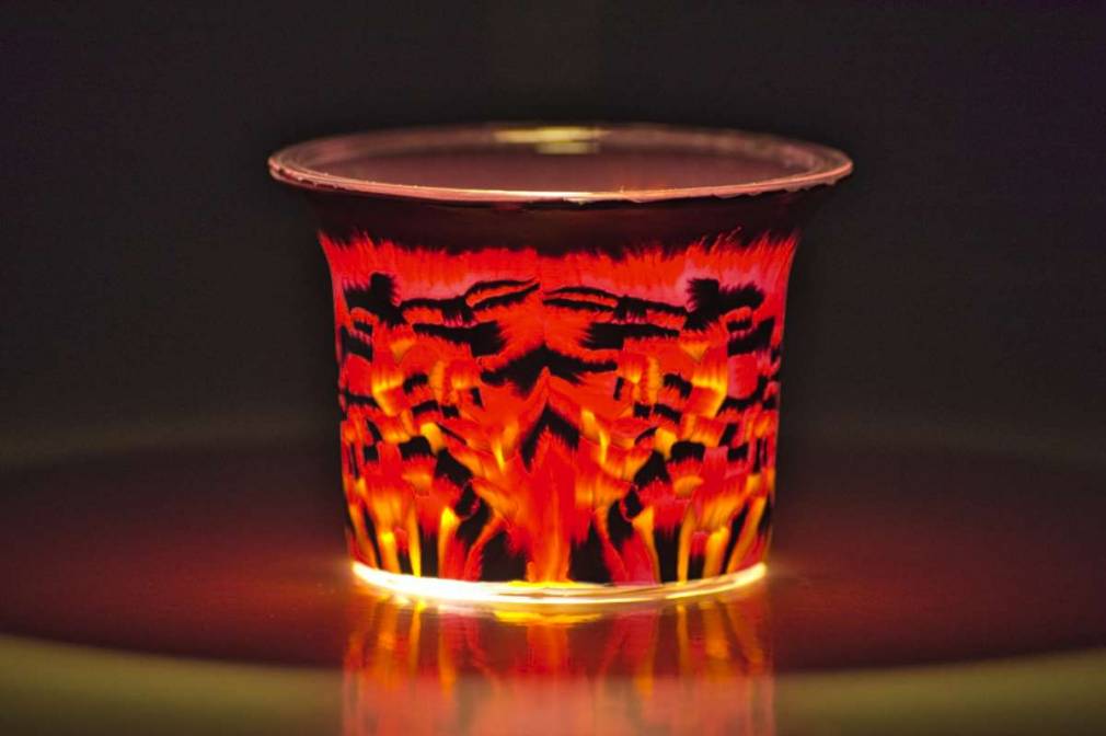 Dieses wunderschöne Leuchtglas wird mit einem Teelicht beleuchtet - Ein echter Hingucker für Ihr Zuhause.