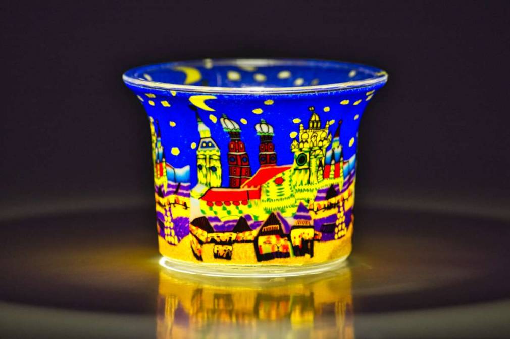 Votiv Glas 204 München bei Nacht dekoratives Windlicht