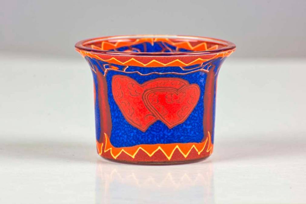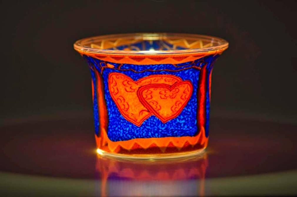 Votiv Glas 214 Herzen rot/ blau dekoratives Windlicht