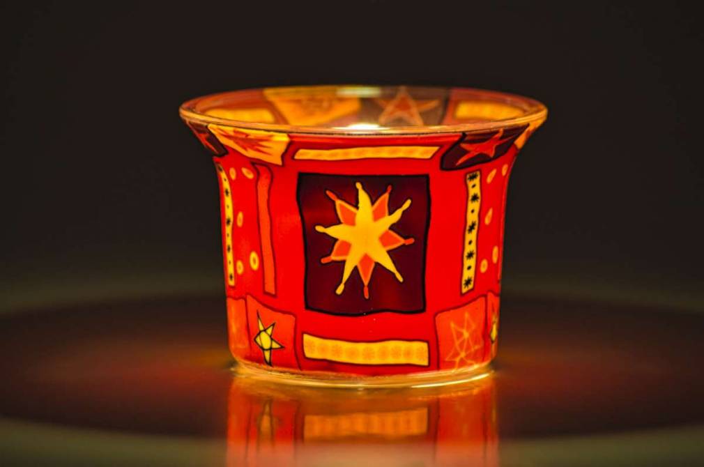 Bitte beachten Sie, dass die Leuchtgläser beim Fotografieren in Studioumgebung zur besseren Erkennung der Motive mit einer elektrischen Lampe beleuchtet wurden. Beim Beleuchten mit einem Teelicht, ist diese nicht ganz so hell, wirkt dafür lebendiger und verbreitet einen gemütliche Atmosphäre.